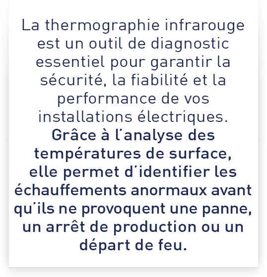 • Inspection thermique : Réalisation de clichés infrarouges, installations en charge, sans interruption de service